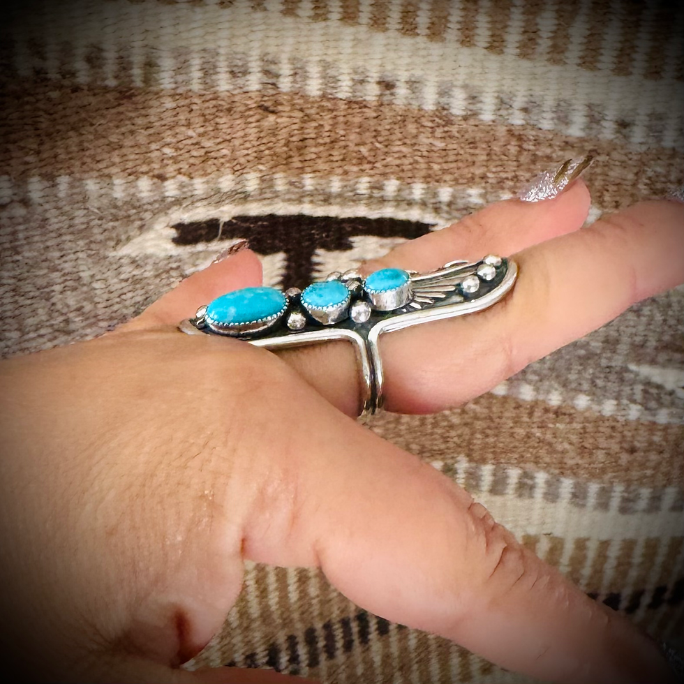 "Thank You for my beautiful turquoise cactus ring. I love it. And thank you for amazing customer service. Friends, if any of you are in need of authentic Navajo Jewelry, Take a look at what Carrie and her husband make & sell. Beautiful stuff! you will not be disappointed!"
